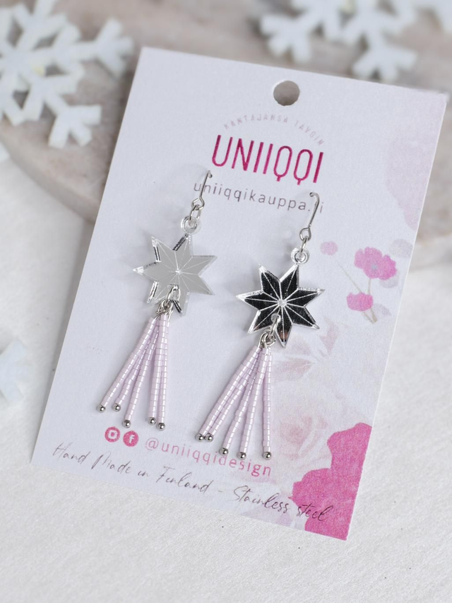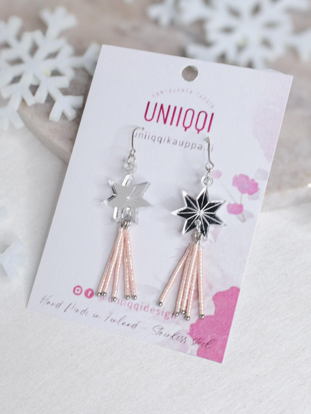 Peiliakryylistä leikattu tähti ja siemenhelmistä punottu pyrstö – kuin pieni tähdenlento, joka seuraa sinua missä kuljetkin. ✨Täydellinen lahja unelmoijalle.