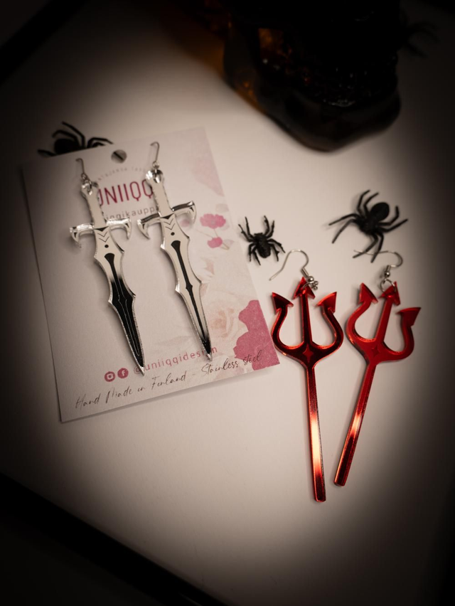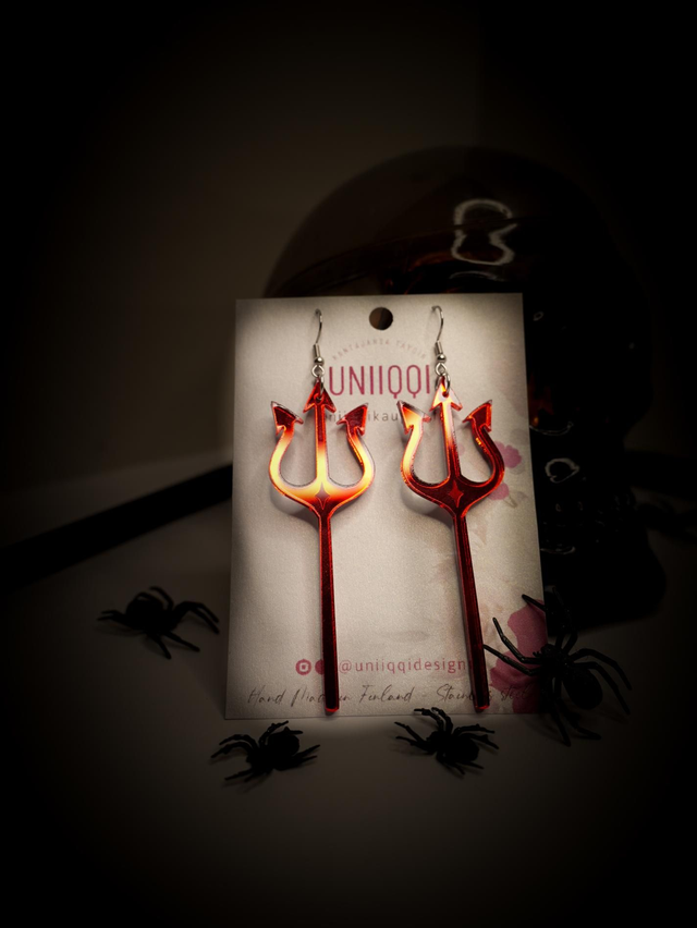 Valmistettu korkealaatuisesta akryylistä korupajallani Keski-Suomessa. Korut toimitetaan pahviseen korukorttiin kiinnitettynä. Korurasian voi ostaa erikseen.