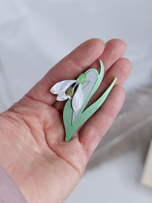 Helmiäisakryylin hauras hohde, peiliakryylin kevätauringossa kimmeltävä pinta ja vihreän glitterakryylin hentoinen säde muistuttavat: talvi väistyy aina lopulta.