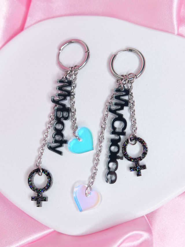 Voima-korvakorut ovat näyttävät ja asenteella varustetut feministiset korvakorut, jotka juhlistavat itsenäisyyttä ja oman kehon vapautta.