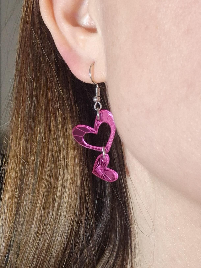 Ystävä-korvakorut säihkyvät kuin jaettu ilo. Kaksi sydäntä yhdessä, kevyesti heilahdellen jokaisella askeleella.